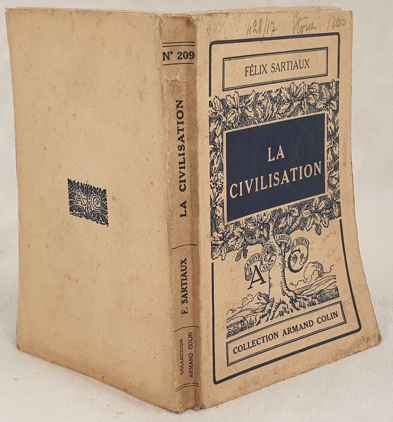 Edizione del 1938 di questa opera sulle civiltà scritto da Felix Sartiaux. All'interno: nozione di civltà, i pionieri (paleolitico e neolitico, Genesi dei grandi Imperi (Oriente, India preariana, Egeo, Insoeuropei, Cina, America precolombiana), Sviluppo e apogeo dei Grandi Imperi, Grecia, Elaborazione del mondo moderno ecc. Sottolineature colorate. In ottime condizioni. Copertina editoriale in ottime condizioni generali con lievi usure ai margini e dorso. Legatura in buone condizioni. All'interno le pagine si presentano in buone condizioni con rare fioriture. In 16. Dim. 17,5x11,5 cm. Pp. 222+(2)+16. Edition of 1938 of this work about civilisations written by Felix Sartiaux. Inside: notions of civilisations, pioneers (paleolitic and neolitic, Genesis of big Empires (Middle East, India prearian, Egeo, Insoeuropeans, China, America precolombiana), Development of Big Empires, Greece, Modern world ecc. Coloured underlinings. In very good conditions. Editorial cover in very good general conditions slightly worn in the edges and spine. Binding in good conditions. Inside pages are in good conditions with occasional foxings. In 16. Dim. 17,5x11,5 cm. Pp. 222+(2)+16.