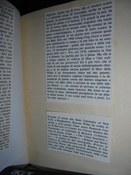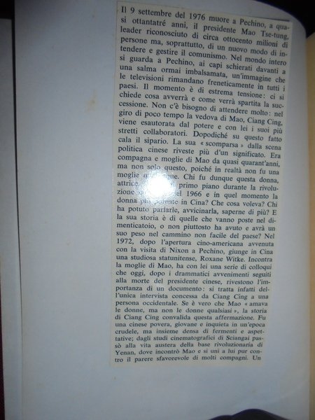 Roxane, Witke. Milano, A. Mondadori, 1977. LA COMPAGNA CIANG CING. In-8°, tela e oro. 641, (2) pp. con 56 illustrazioni fuori testo e 3 cartine nel testo. Non è presente la sovracopertina ma in ottimo stato di conservazione. Uff. pacco D. carc.