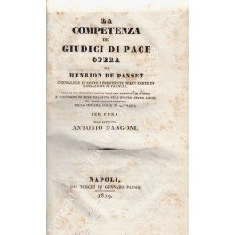 Opera di Henrion de Pansey recata in italiano dalla settima edizione di Parigi e corredata di note relative alle nostre patrie leggi ed alla giurisprudenza della suprema corte di giustizia. Per cura dell'avvocato Antonio Mangoni