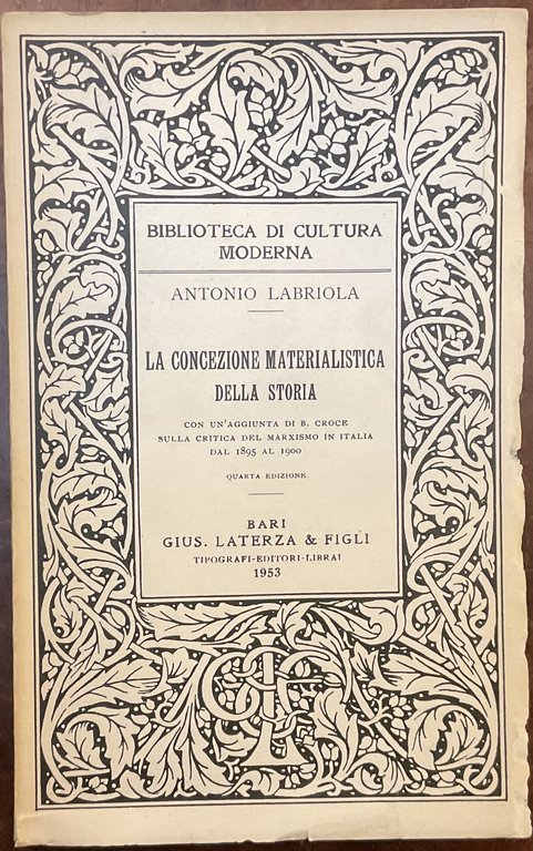 La concezione materialistica della storia, con un'aggiunta di B. Croce sulla critica del marxismo in Italia dal 1895 al 1900