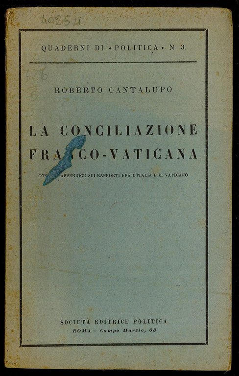 Libro vintage. Copertina con segno di colla verde e note a matita, intonso. Usura da scaffale. Evidente segno del tempo.