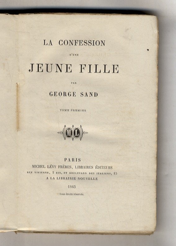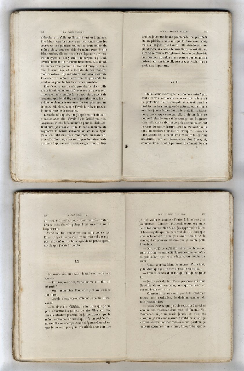 Paris, Michel Lévy frères, 1865, volumi 2, in-16, brossura editoriale, pp. (4), 311, (1) - (4), 317, (3). Dorsi rinforzati con velina. Prima edizione in volume. Tracce d'uso ma buone condizioni.