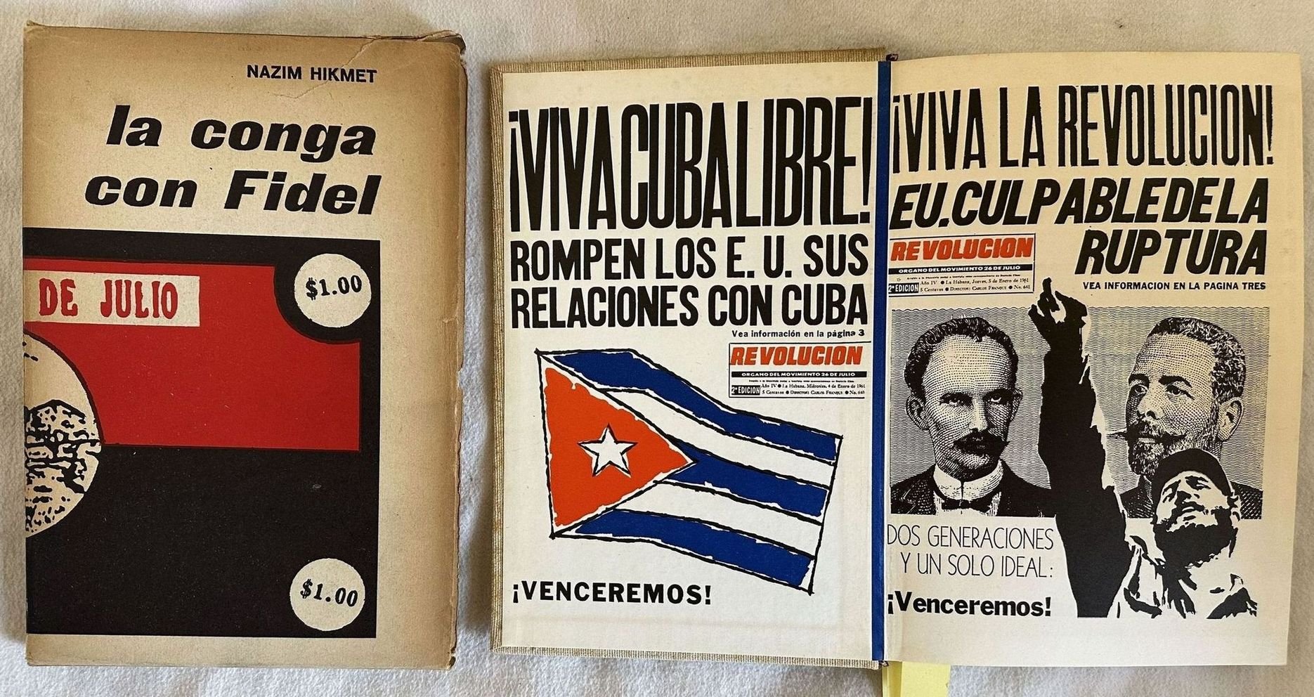 Edizione italiana del 1961 del poema del poeta rivoluzionario Nazim Huikmet dedicato alla rivoluzione cubana. L'autore descrive in versi il suo viaggio a Cuba celebrando la storia del paese e la Rivoluzione in atto. Traduzione a cura di Joyce Lussu. Numerose immagini di giornali d'epoca a cura di Giorgio Cingoli e foto. In ottime condizioni. Copertina in tela editoriale in ottime condizioni con lievi usure ai margini e dorso. Cofanetto originale. Legatura in buone condizioni. Pagine in buone condizioni con fioriture. In 8. cm. 21,5x15. Pp. (140).Italian edition of 1961 of the poem by the revolutionary poet Nazim Huikmet dedicated to Cuba revolution. The author describes in verses his travel to Cuba describing the history of the acountry and the Revolution. Translation by Joyce Lussu. Different images of magazines illustrations and photoes by Giorgio Cingoli. In very good conditions. Cloth editorial cover in very good conditions lightly worn in the extremities. Original case. Binding in good conditions. Pages in good conditions with foxing. In 8. cm. 21,5x15. Pp. (140).<BR><BR>