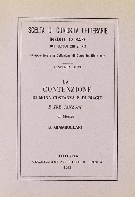 Sala Bolognese, 1969; br., pp. 36, cm 12,5x17,5. (Scelta di curiosità lett. dal sec. XIII).