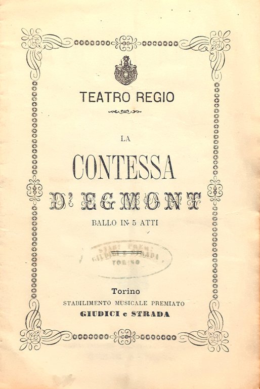 La Contessa D'Egmont Ballo in cinque atti Teatro Regio Torino 1878