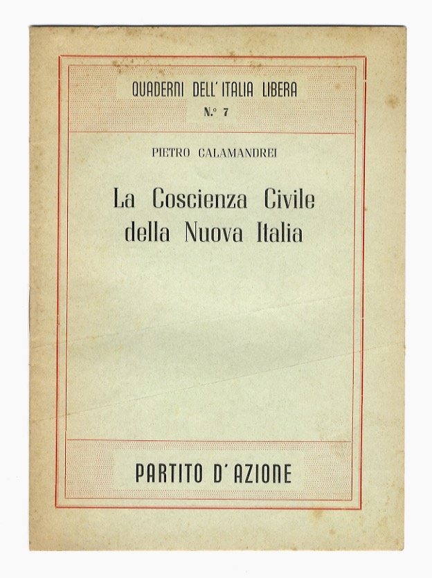 [S.l.], [Partito d'Azione], [1944], in-8 piccolo, br. editoriale, pp. 16. "Quaderni dell'Italia Libera", n. 7. Discorso pronunciato alla cerimonia per l'insediamento, nell'Aula Magna dell'Università di Firenze il 15 settembre 1944. Eccellente esemplare.