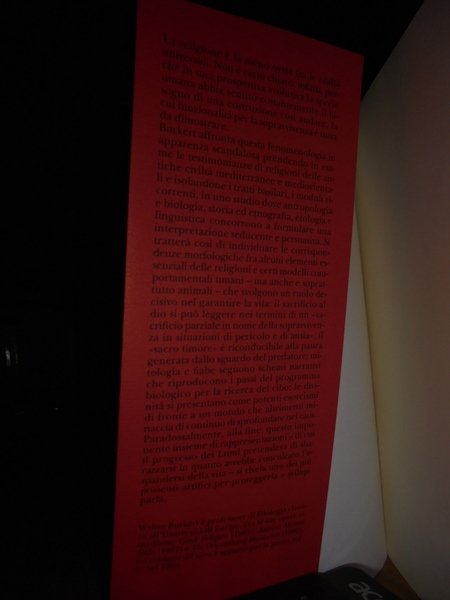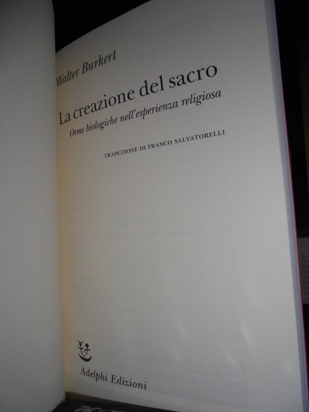 Walter, Burkert. Milano, Adelphi Edizioni, 2003. La Creazione del sacro. Orme biologiche nell' esperienza religiosa. Traduzione di Franco Salvatorelli. In-8°, cartoncino edit. 249, (2) pp. In stato di nuovo. Uff. stanz. TV. esot.
