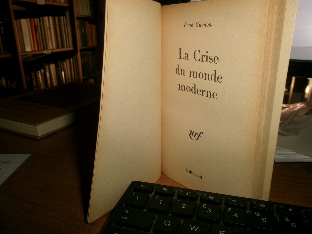 René Guénon. France, Gallimard, 1969. La crise du monde moderne. In-16°, cart. edit. 183, (5) pp. Carta con un naturale ingiallimento. Ben conservato. Neg. mob. 5