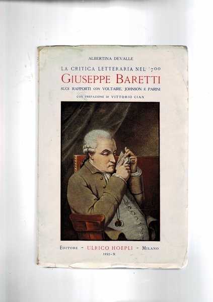 La critica letteraria nel '700. Giuseppe Baretti suoi rapporti con Voltaire, Johnsone Parini. Prefaz. di V. Cian. | Libri antichi e moderni | Devalle Albertina.