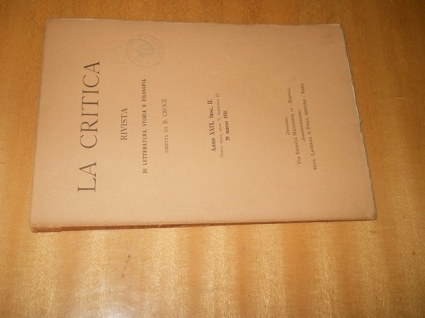 LA CRITICA. RIVISTA DI LETTERATURA, STORIA E FILOSOFIA - fascicolo 2 - 1931