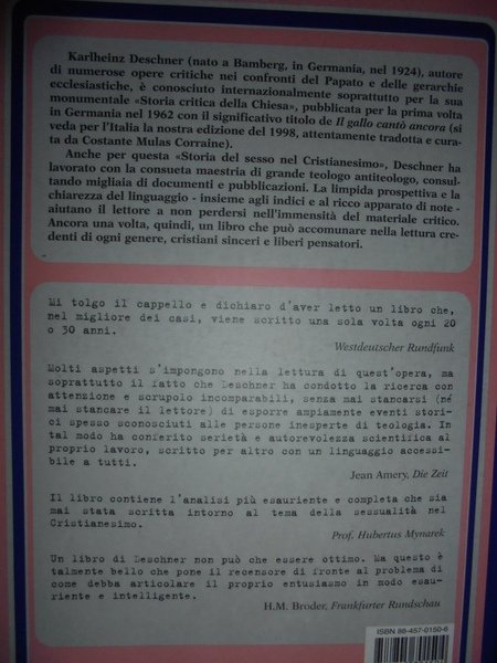 Karlheinz, Deschne. Viterbo, Massari Editore, 2000. LA CROCE DELLA CHIESA STORIA del sesso nel cristianesimo. A cura di Costante Mulas Corraine. In-8°, cartoncino edit. 350, (2) pp. In stato di nuovo. Neg. mob. bianco