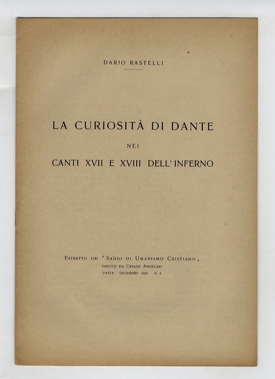 Pavia, (La Tipografica Ticinese di C. Busca), 1950, in-8, br. editoriale, pp. 12. Estratto.