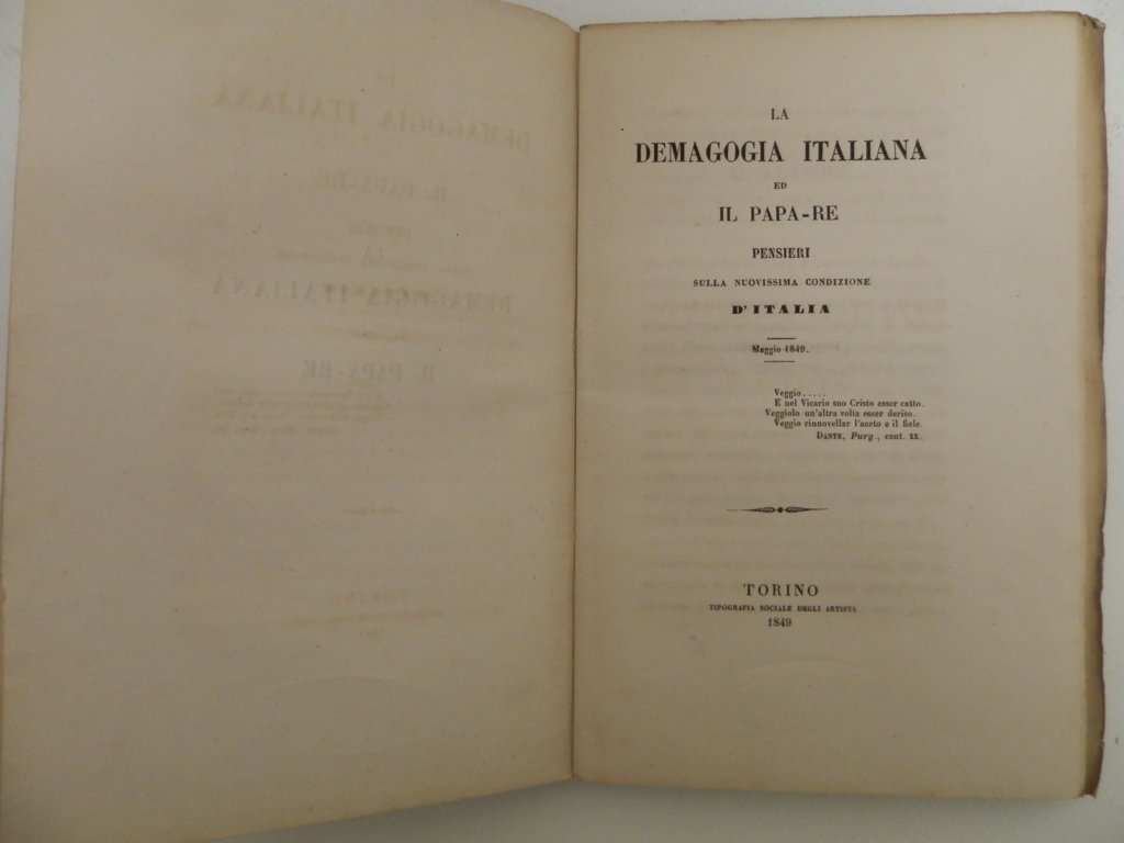 La demagogia italiana ed il papa-re. Pensieri sulla nuovissima condizione d’Italia.