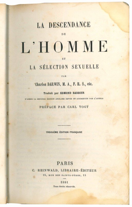 La descendance de l'homme et la sélection sexuelle.