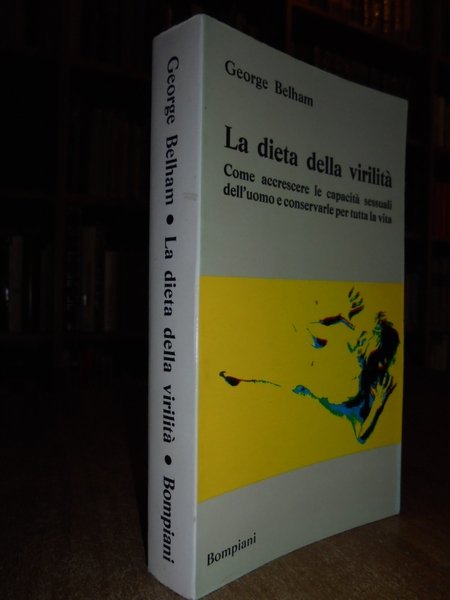 Bompiani, 1970. La dieta della virilità. Come accrescere le capacità sessuali dell' uomo e conservarle per tutta la vita. IN- 8°, CARTONCINO EDIT., 314 PP. IN OTTIMO STATO DI CONSERVAZIONE. Neg. mob. nero
