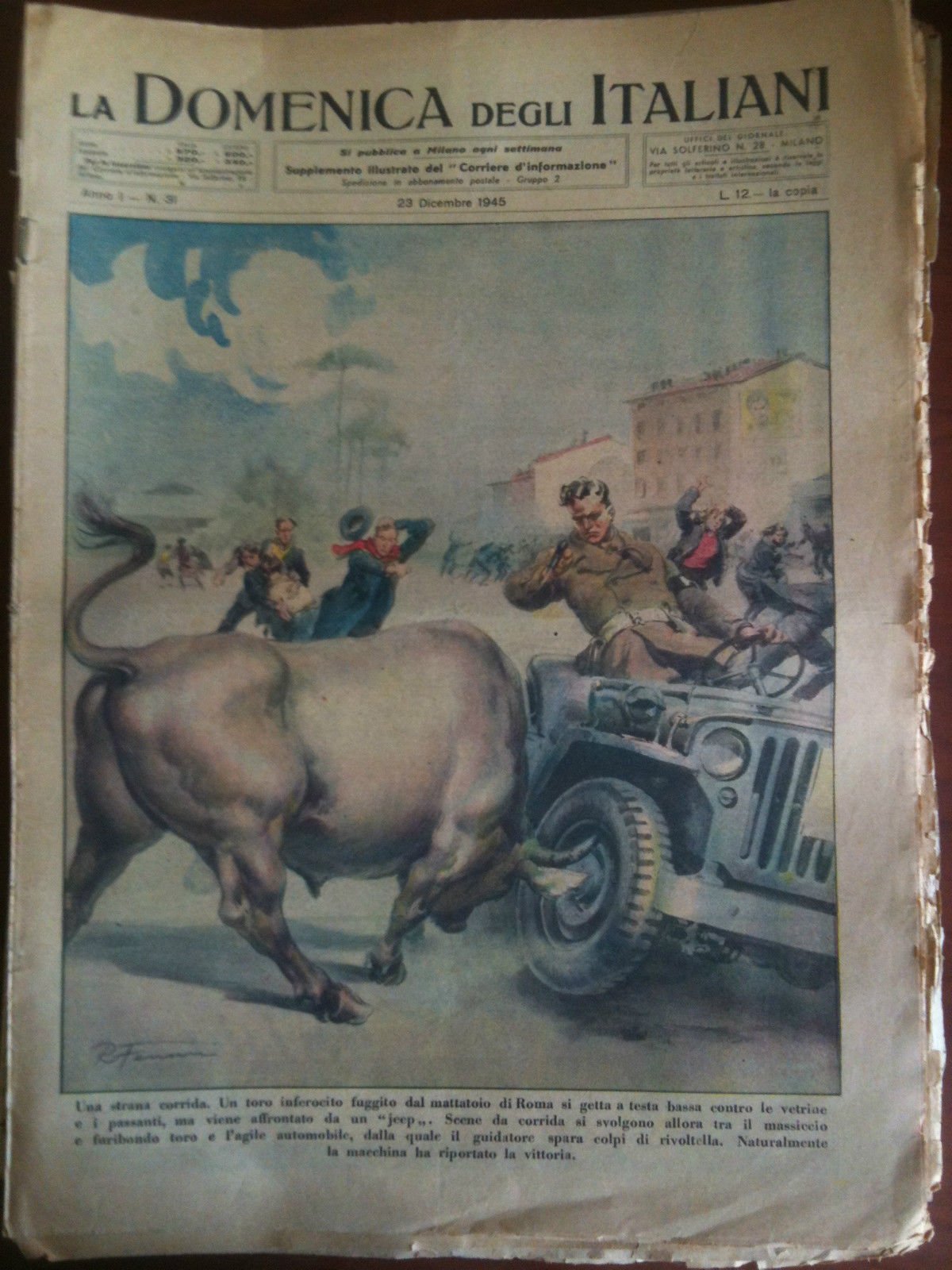 La Domenica degli ItalianiDopo la caduta del regime fascista il giornale cambia testata per poi ritornare all'originaleDOMENICA DEL CORRIERE23 Dicembre 1945In buono stato salvo margini danneggiati da piccoli strappi (25 g)E8821