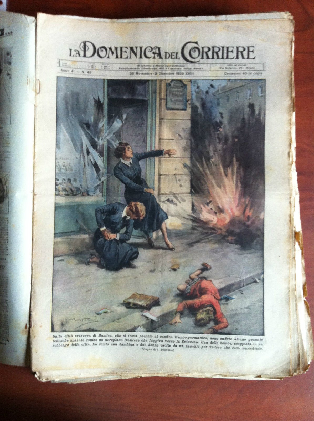 La Domenica del CorriereAll'interno disegni di A. Beltrame: Basilea (Svizzera) granate tedesche contro aereo francese cadono sulla città ferndo donne e bambiniAllegrie studentesche americane delle matricole universitarieIn buono stato (50 g)E7449