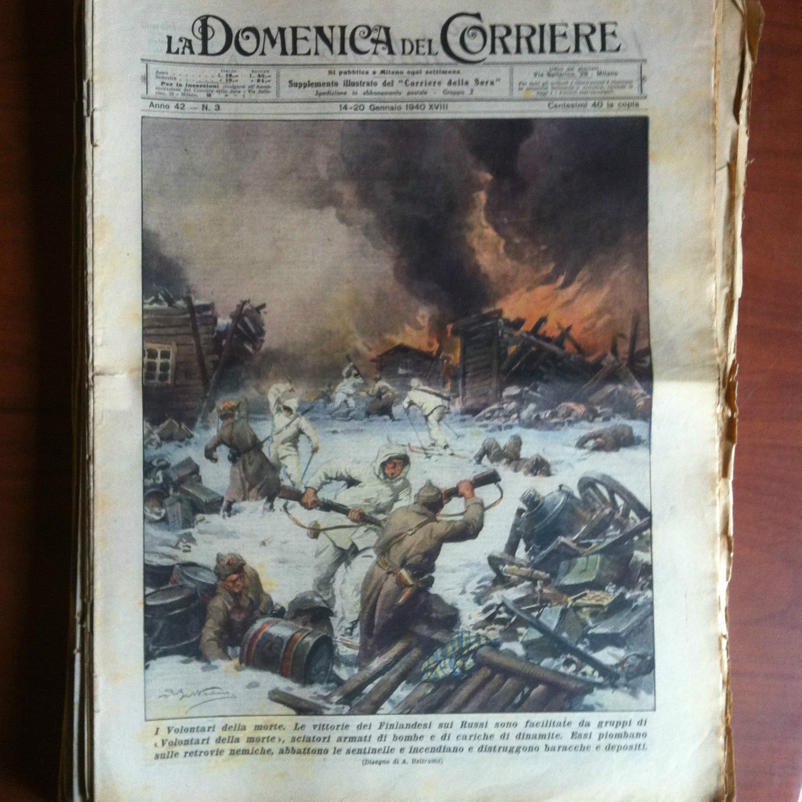 La Domenica del CorriereAll'interno disegno di A. Beltrame: I volontari della morte. Le vitorie dei Finlandesi sui RussiSalva i 4 figli dalle fiammeIn buono stato (50 g)E7223