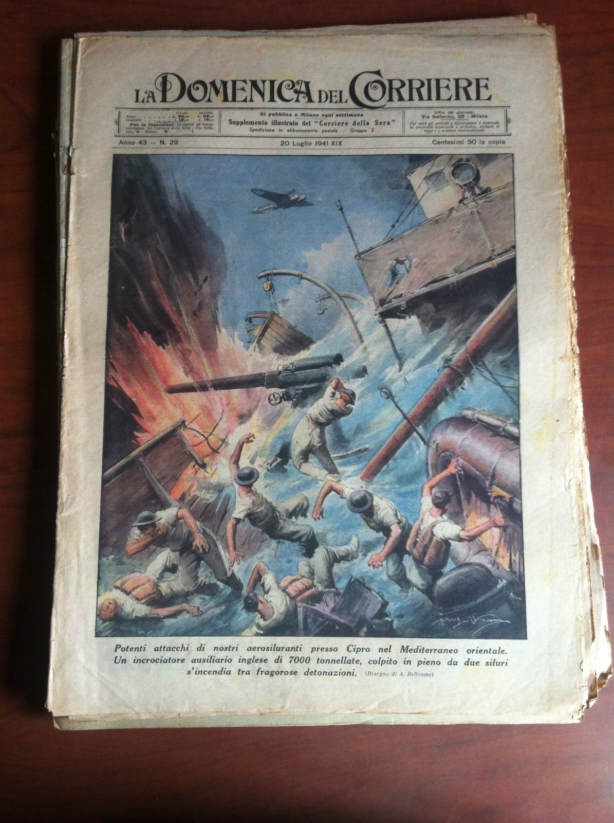 La Domenica del CorriereAll'interno disegno di A. Beltrame:Attacchi di nostri autosiluranti a CiproAvanzata tedesca in Russiain buono stato salvo piccoli strappi ai margini(40 g)E9444