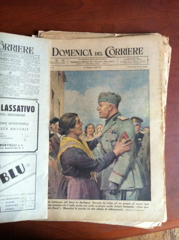 La Domenica del CorriereIl DUCE in SardegnaAll'interno disegno di A. Beltrame: Alla frontiera dell'India i Giapponesi dopo la conquista della BirmaniaIn buono stato salvo piccoli strappi ai margini50 gE7658