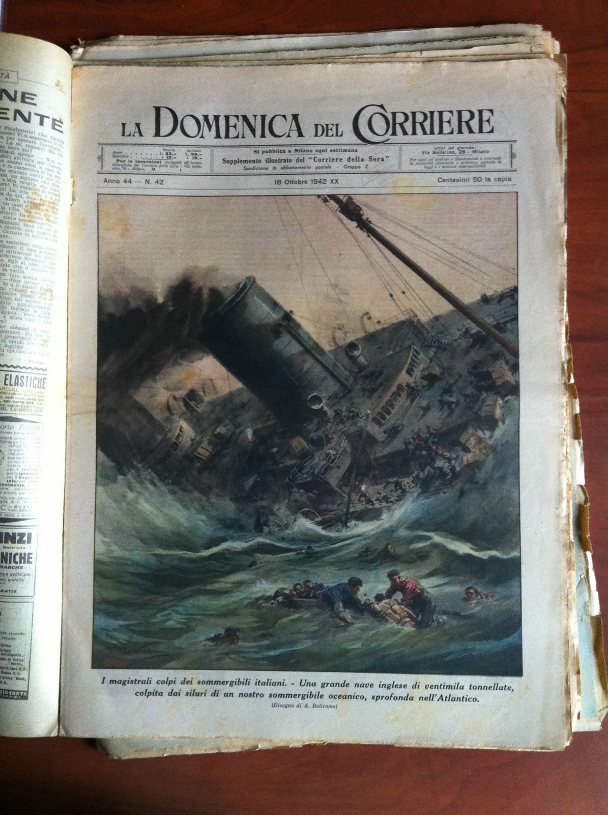 All'interno disegni di A. Beltrame: Grande nave inglese sprofonda nell'Atlantico sotto i colpi del sommergibile italianoTuapse Caucaso reggimento sovietico avvistato da aeroplani tedeschi e decimatoIn buono stato a (50 g)