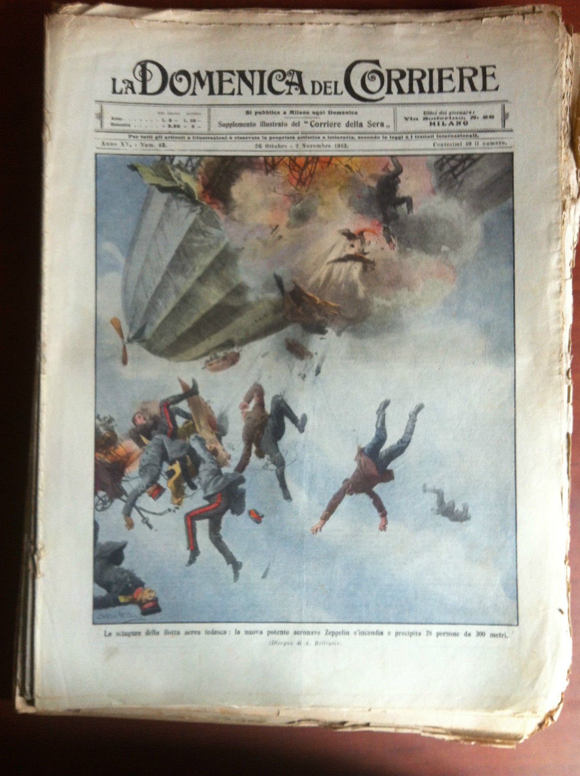 La Domenica del CorriereAll'interno disegno di A. Beltrame: Bombardamento sul ghiaccioSciagura della flotta aerea tedesca Zeppelin si incendiaPittoresca cavalcata sarda a SassariIn buono stato salvo piccoli strappi margini (50 g)E9429