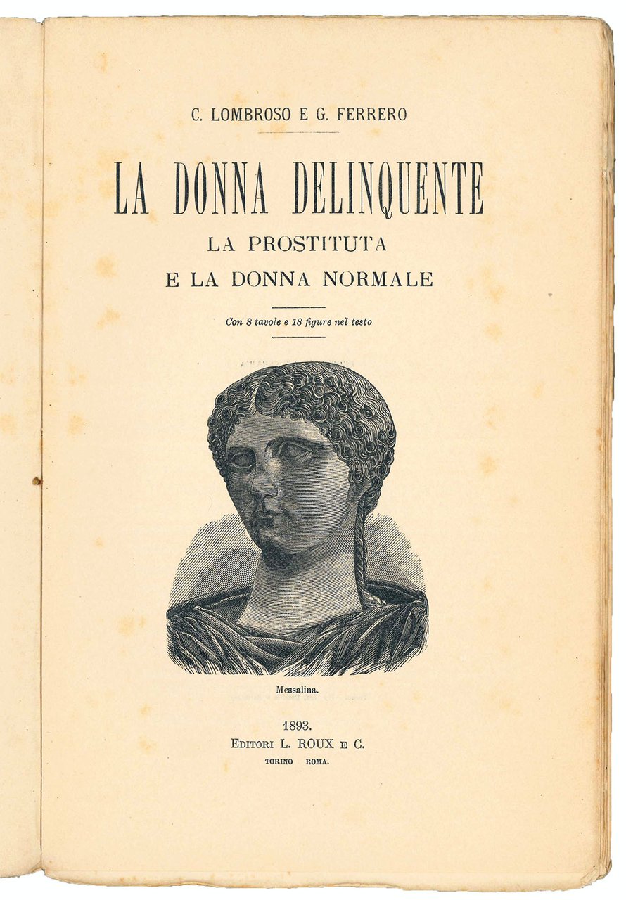 In Criminal Woman, Lombroso applies to women the same theories expressed in his Uomo delinquente (‘Criminal Man'), published in 1876, the work that marks the foundation of criminal anthropology. In the text, he outlines a comparative analysis of “normal women” opposed to “criminal women” such as “the prostitute”.