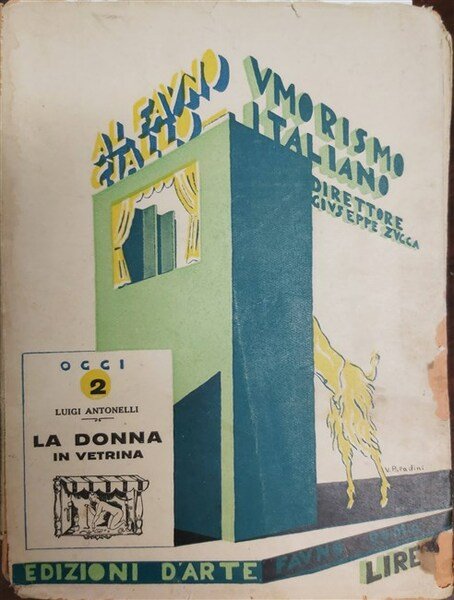 in-16, pp. 86, (2), (8), bross. edit. con sovracop. a colori di V. Paladini. Con molte ill. Prima ediz. Collana "Umorismo italiano. Serie del fauno giallo" diretta da Giuseppe Zucca, n. 2. Gambetti Vezzosi, p. 28. Minimi strappi alla cop. ma ottimo esempl. [028]