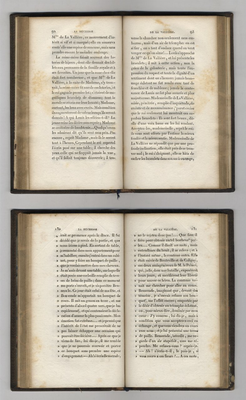 Paris, Lecointe et Durey, Libraires, 1823, voll. 2, in-12, legatura coeva in pieno vitello con piastra romboidale al centro dello specchio entro cornici impresse a secco ai piatti, dorso a 4 nervi con titolo e fregi oro, sguardie e tagli marmorizzati, nastrino, pp. XXXVIII, 209, (1); 251, (1). Ex libris araldico e firma d'appartenenza coeva. Tracce residue da umidità: piatti con leggere erosioni e dilavature ai piatti, minime mancanze ai fogli di guardia del vol. 1° e blande gore marginali.