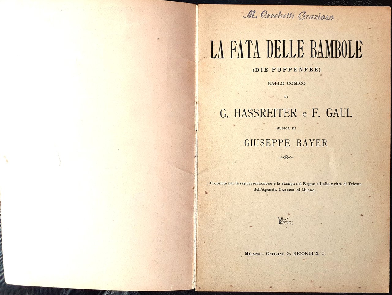 La Fata delle bambole Ballo Comico, Musica di G. Bayer - Ricordi 1903 ca.