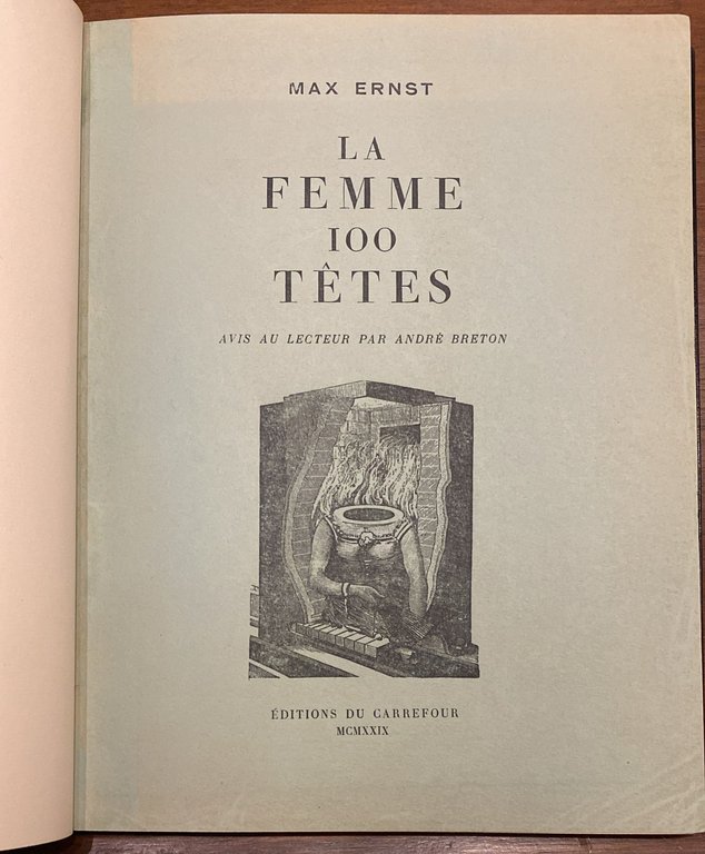 Edizione di 1003 esemplari. Esemplare n. 894 di 900 impressi su vélin teinté. Legatura firmata "J.P. Miguet" in mezzo box nero, piatti esterni in carta lucida marrone, protetta da sovraccoperta trasparente in acetato. Taglio superiore dorato. Si conservano la copertina e il dorso della brossura originale. Cofanetto in cartoncino con lievissimi segni d'usura. Primo "roman collage" di Max Ernst di 147 illustrazioni, suddiviso in nove capitoli. Sotto a ogni immagine una breve didascalia. Prima di copertina figurata.