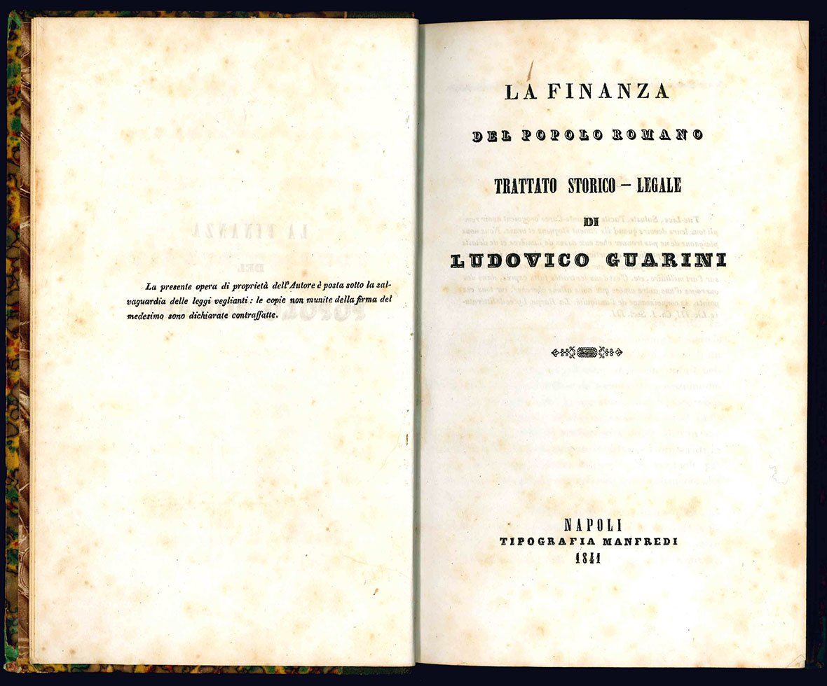 La finanza del popolo Romano. Trattato storico-legale di Ludovico Guarini.
