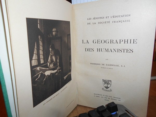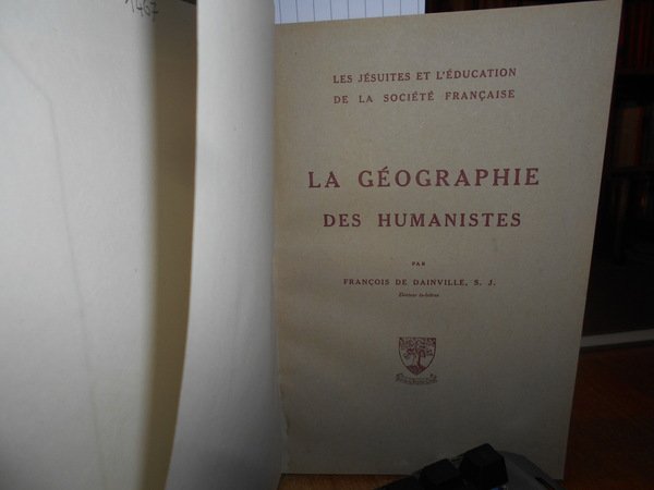 François de Dainville, S.J. Paris, Beauchesne et ses Fils, 1940. Les Jésuites et l' éducation de la Société Française. La Géographie des Humanistes. In-8°, tela verde con titolo in oro entro tassello al dorso, copertine originali conservate. xviii, 562, (2) pp. Ottimo esemplare in legatura artigianale anni '60 con le brossure originali conservate. Uff. B - III - 6