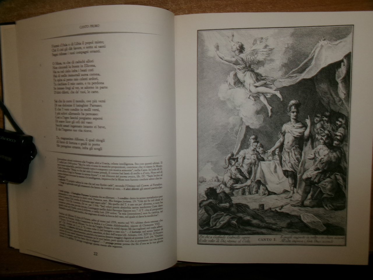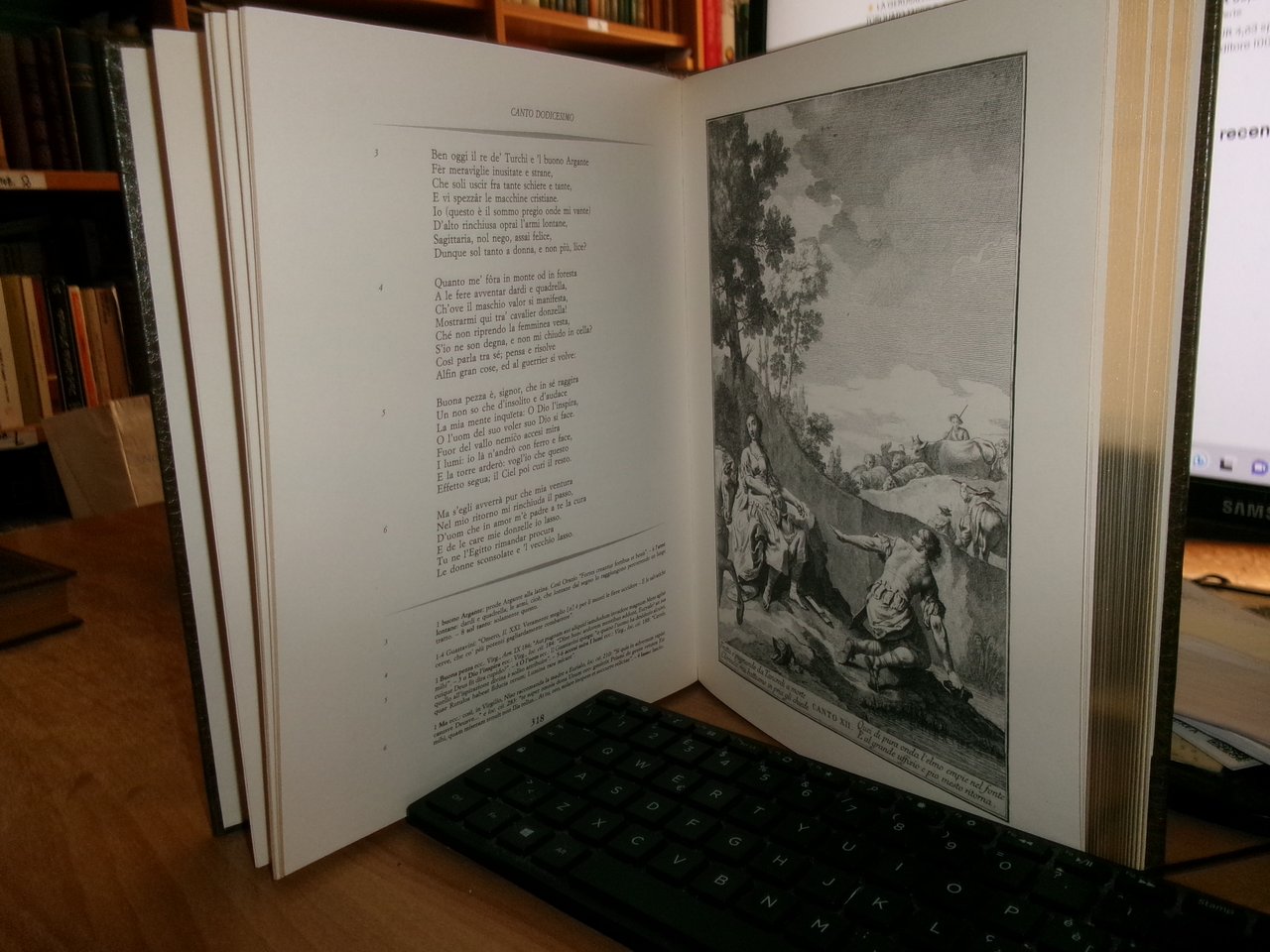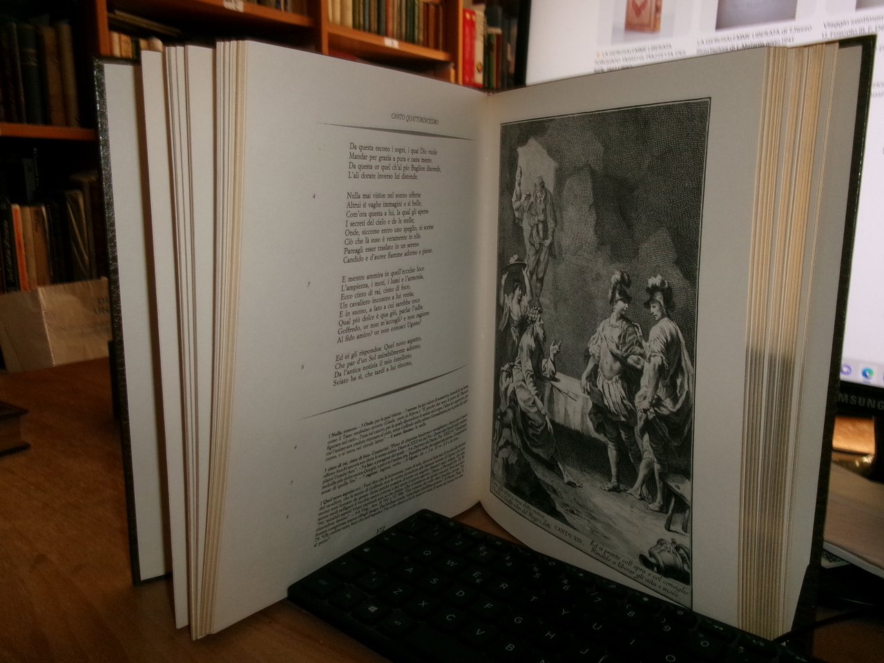 TORQUATO TASSO. La Gerusalemme Liberata. Milano, Editoriale Del Drago, 1992. Commento di Severino Ferrari. 2 volumi in-4°, bella legatura in similpelle con decori in oro, tagli dorati. Per complessive 574,(1) pp. con numerose tavole e illustrazioni n.t. di Giovan Battista Piazzetta. Ottimo esemplare in cofanetto rigido. Uff. stanzetta TV mob. nostro
