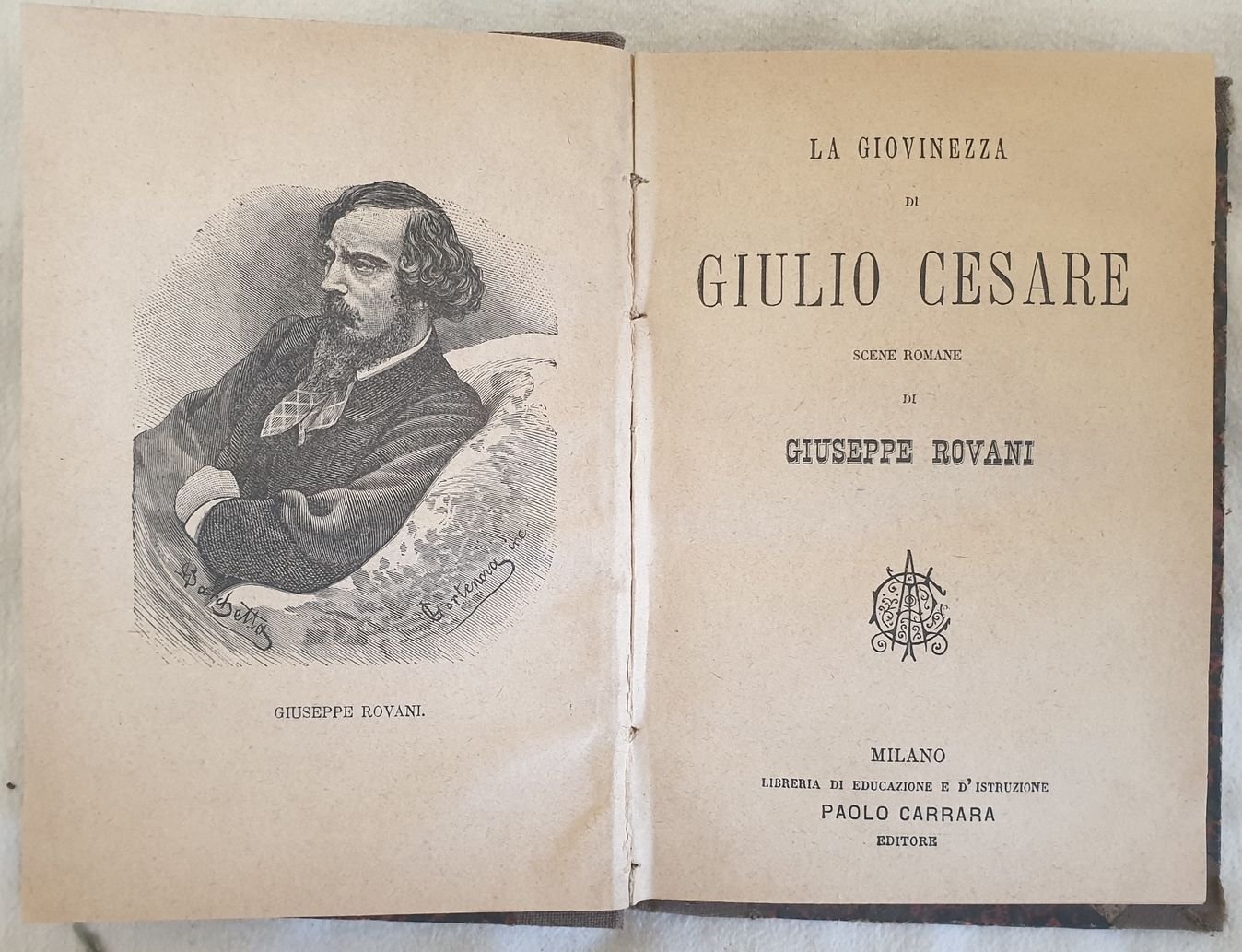Interessante monografia del 1889 sulla giovinezza di Giulio Cesare di Giuseppe Rovani. In buone condizioni. Copertina in mezza tela muta in buone condizioni con lievi usure marginali. Legatura in buone condizioni. Pagine in buone condizioni con rare fioriture. In 16. cm 18x13. Pp. 318+(2).Interesting monography of 1889 about the youth of Julius Caesar written by Giuseppe Rovani. In good conditions. Half cloth cover in good conditions lightly worn in the extremities. Binding in good conditions. Pages in good conditions with occasional foxing. In 16. cm 18x13. Pp. 318+(2).