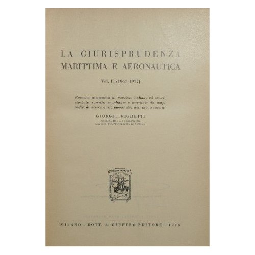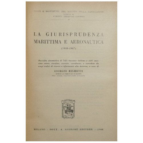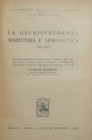 Raccolta sistematica di 7681 massime italiane e 1097 massime estere, rivedute, corrette, coordinate, e corredate da ampi indici di ricerca e riferimenti alla dottrina - Collana Fonti e documenti del Diritto dellla Navigazione raccolti da Antonio Lefebvre D'Ovidio. N. 5 - in 8° - pp.CVI + 1398; LVI + 648 - Tela con titolo e fregi in oro al dorso e sovraccoperta - Due volumi - Piccoli strappi e mancanze alla sovraccoperta, rari segni a matita a margine di poche pagine al primo volume - Vol. I: (1940-1967); Vol. II: (1967-1977)