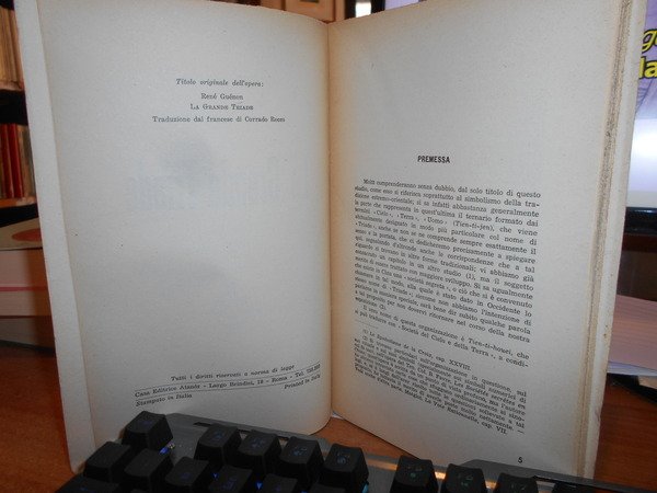 René Guénon. Roma, Atanòr, 1951. La Grande Triade. In-8°, br. orig. 160 pp. In ottimo stato di conservazione con il dorso leggermente ingiallito. Neg. esot. mob. 101 entro busta trasp.