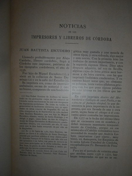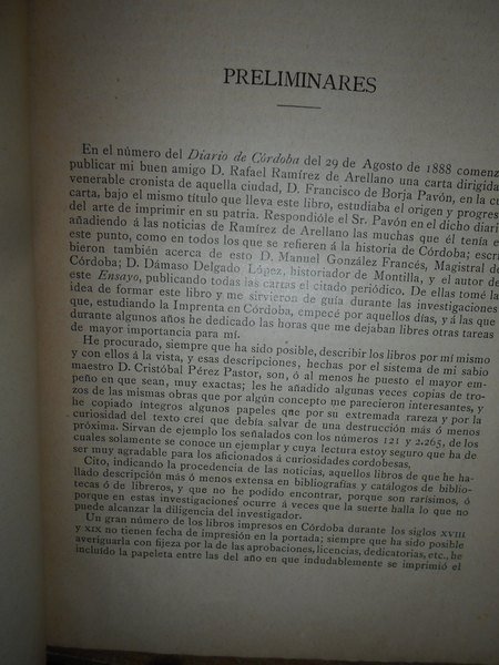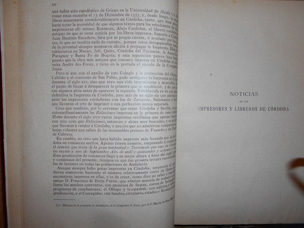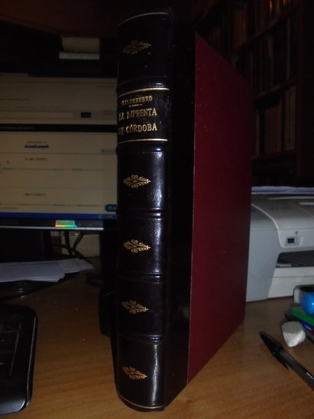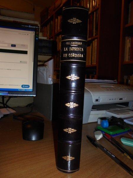 Don José Maria de Valdenebro y Cisneros. Madrid, Establecimiento Tipogràfico Sucesores de Rivadeneyra, 1900. LA IMPRENTA EN CÓRDOBA. ENSAYO BIBLIOGRÁFICO. In-4°, m.pelle, doso a nervi con fregi e titolo in oro. xxxi, 721, (4) pp. Bell' esemplare. Neg. mens. bianca