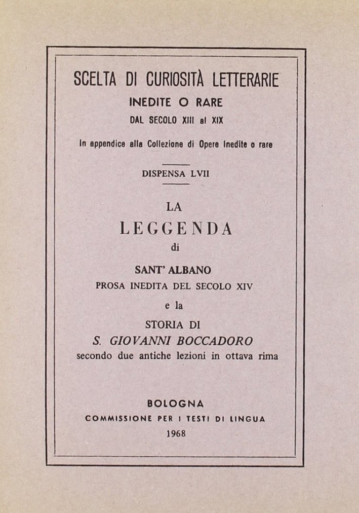 Sala Bolognese, 1969; br., pp. 114, cm 13x18. (Scelta di curiosità lett. dal sec. XIII).