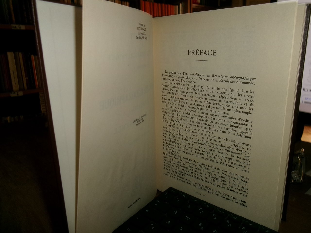 La Littérature Géographique Française de la Renaissance. Répertoire Bibliographique
