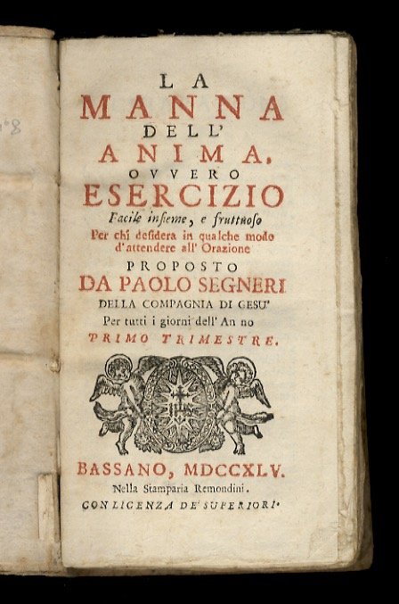 La manna dell'anima, ovvero Esercizio facile insieme e fruttuoso per chi desidera in qualche modo d'attendere all'orazione, proposto da Paolo Segneri [.] per tutti i giorni dell'anno. Primo trimestre. Secondo trimestre. Terzo trimestre.
