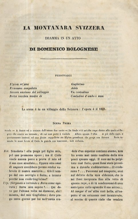 La Montanara svizzera. Dramma in un atto.