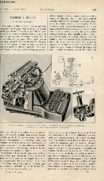 La nature n° 1658 - Machine a écrire par G.C.- Viseur Rationnels - Le Vent et les arbres par L.R - Les Lignes française d'accès au Simplon par M.J - L'ostréiculture au Japon par P de M - Une Curieuse Plaque Tournante par D.L - Bateau de sauvetage