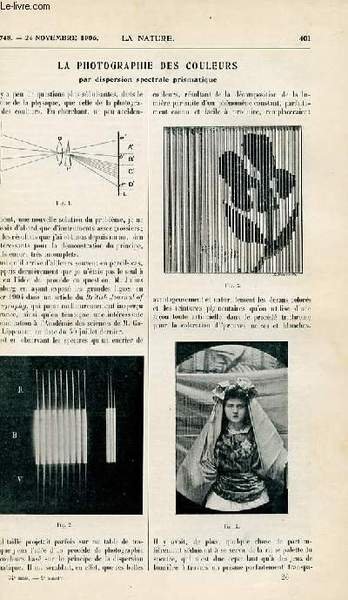 24 novembre 1906. In-12. Broché. Bon état, Livré sans Couverture, Dos satisfaisant, Intérieur frais. Paginé de 401 à 416. Quelques illustrations en noir et blanc dans et hors texte. . . . Classification Dewey : 500-SCIENCES DE LA NATURE ET MATHEMATIQUES