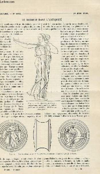 La nature n° 1882 - Le diabolo dans l'Antiquité par Ferdar, La dissémination de la radioactivité par Launay, La destruction des moustiques par le cactus épineux par Blin, Téléautocopiste L.Sémat par Fournier, La sécheresse aux Etats-Unis par Forbin
