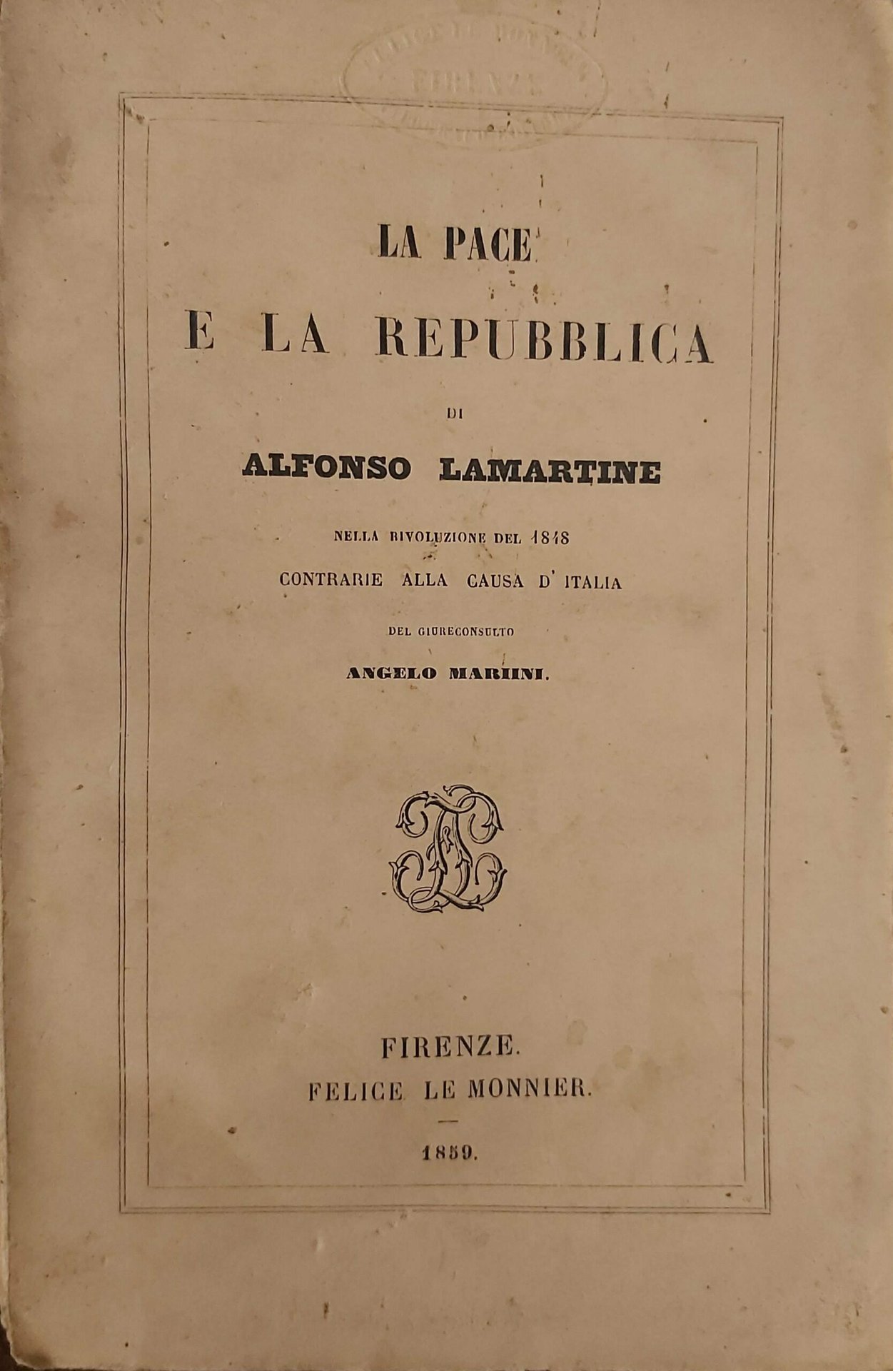 LA PACE E LA REPUBBLICA di. nella rivoluzione del 1848 contrarie alla causa d'Italia del giureconsulto Angelo Mariini.