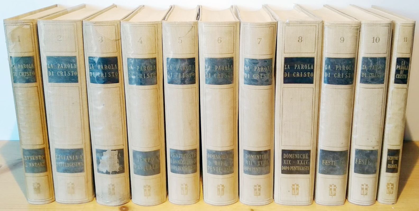11 Volumi. f.to cm 21x15, copertina rigida con sovraccoperta in acetato. Ottime condizioni: copertine con lievi segmni di usura.  vol.1 Avvento e tempo di Natale, vol.2 Epifania e settuagesima, vol.3 Quaresimae tempo di Passione, vol.4 Tempo pasquale, vol.5 Pentecoste I-IV, vol.6 Domeniche V-XI dopo pentecoste, vol.7 Pentecoste XII-XVIII, vol.8 Pentecoste XIX-XXIV, vol.9 Feste I, vol.10 Feste II, vol.11 Selezione di schemi e indici