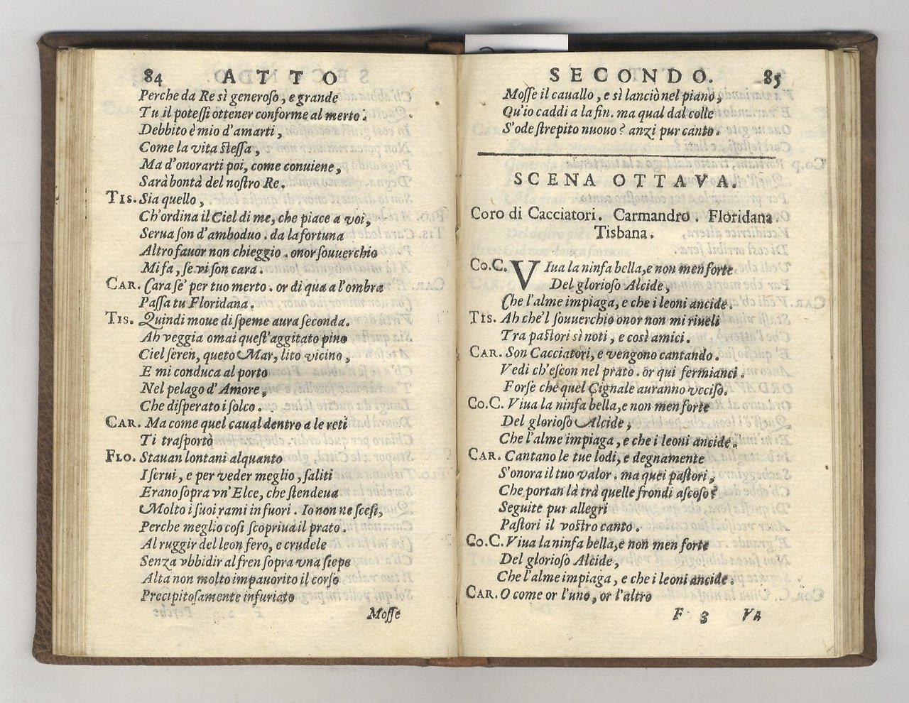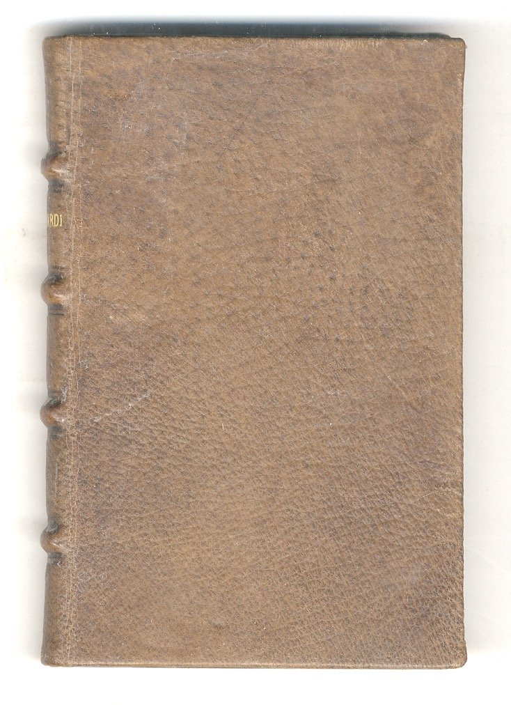 In Ferrara, per Vittorio Baldini stampator camerale, 1602, in-8 piccolo. legatura moderna in pieno marocchino, titolo in oro al dorso, pp. [16], 207, [1]. Con marca in xilografia sul frontespizio. Piccolo camminamento di tarlo interlineare (in qualche caso toccata qualche lettera) su 22 carte. Prima edizione.