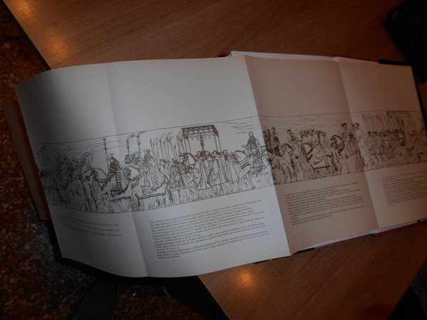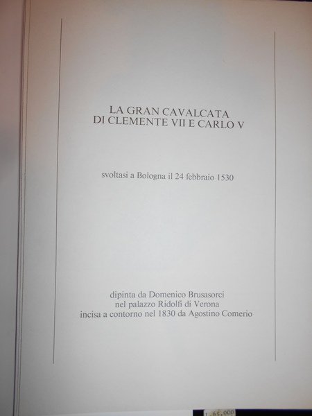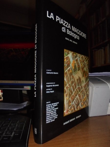 A cura di Giancarlo Roversi (Autori vari). Bologna, Aniballi Edizioni, 1984. La Piazza Maggiore di Bologna. Storia, arte, costume.Gancarlo, Roversi. "Aniballi Edizioni 1984. In-4° piccolo, rilegato con copertina rigida telata e sovraccoperta illustrata, numerose ill. in B/N e a colori, 245, (1) pp. Allegato "La gran cavalcata di Clemente VII e Carlo V svoltasi a Bologna il 24 febbraio 1539 dipinta da Domenico Brusasorci nel Palazzo Ridolfi di verona incisa a contorno nel 1830 da Agostino Comerio.Presentazione di Eugenio Riccomini, prologo di Gina Fasoli. In ottimo stato di conservazione o come nuovo" Neg. natura mob. 0 Altra edizione (Banca Popolare) mob. B