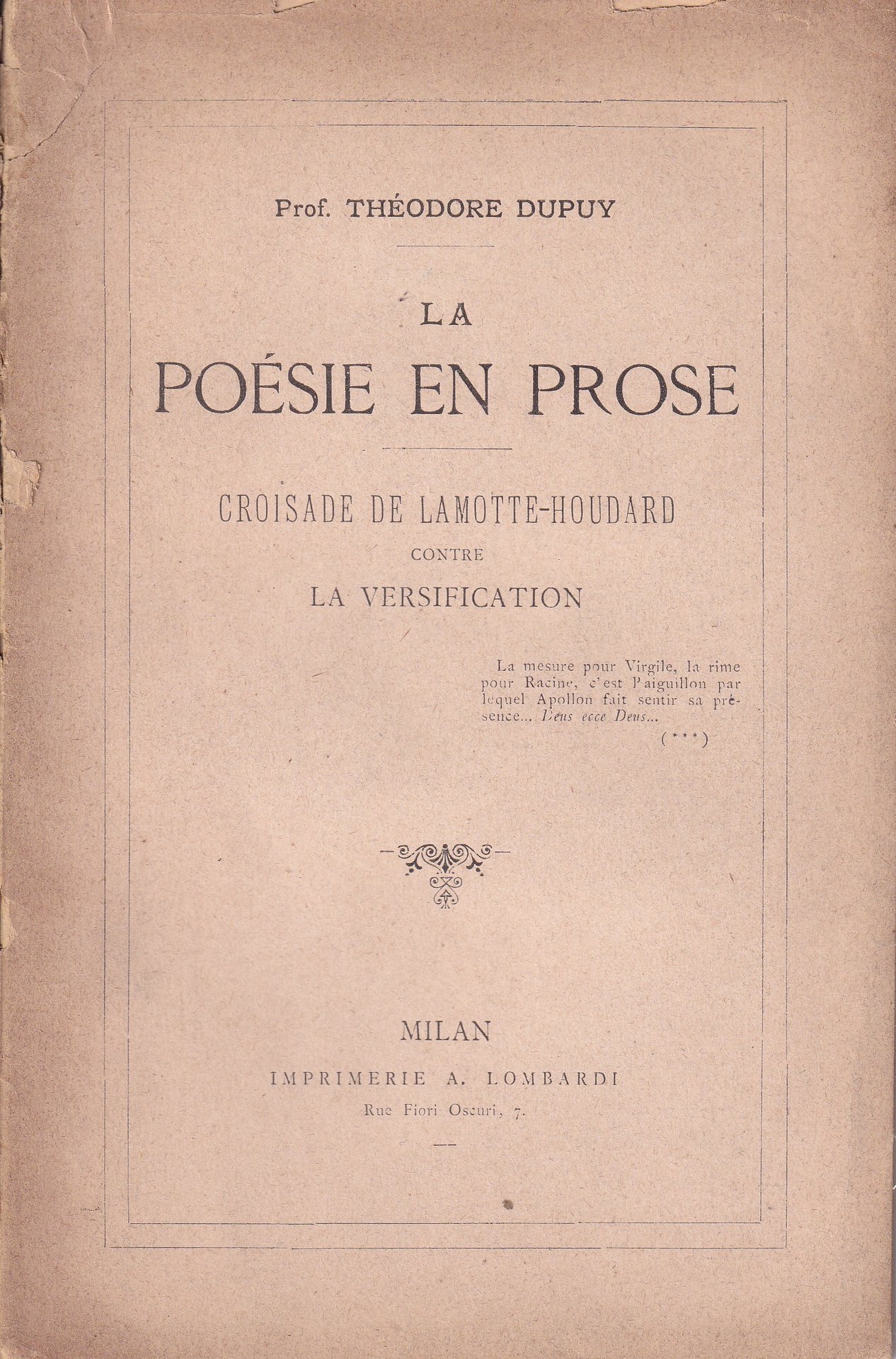 *La poesie en prose. Croisade de Lamotte - Houdard contre la versification.